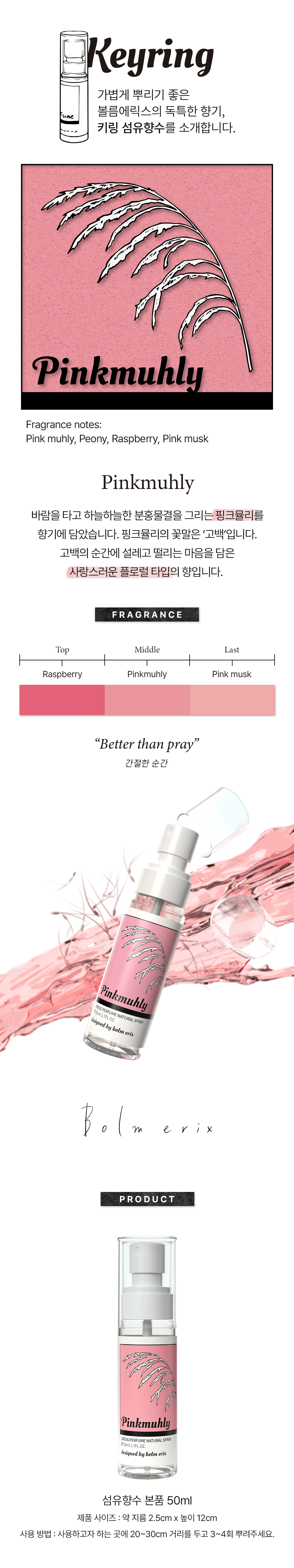 Fragance notes: 핑크뮬리, 피오니, 라즈베리, 핑크머스크